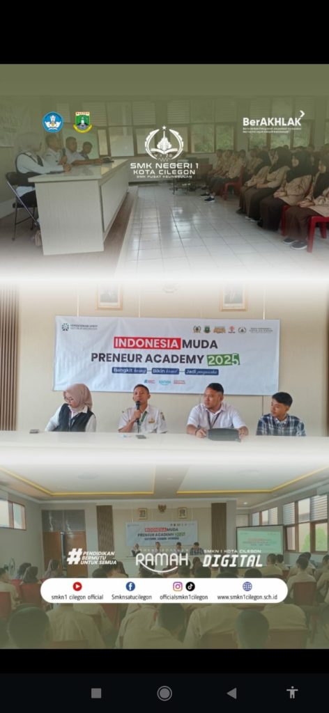 SMKN 1 Kota Cilegon, September 2025 – Indonesia Muda Preneur Academy (IMPA) 2025 menggelar kegiatan sosialisasi program kewirausahaan di sekolah-sekolah menengah dengan tujuan menumbuhkan jiwa wirausaha dan kreativitas generasi muda. Sosialisasi ini menjadi langkah awal untuk mengenalkan konsep kewirausahaan sejak dini sekaligus membekali siswa dengan keterampilan menghadapi era digital dan persaingan global.