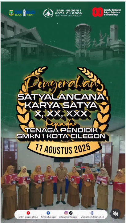 Cilegon, 11 Agustus 2025 – SMKN 1 Cilegon menggelar acara penyerahan Satyalencana Karya Satya kepada para guru yang telah mengabdi dengan penuh dedikasi dan loyalitas selama 10 tahun, 20 tahun, dan 30 tahun. Acara berlangsung khidmat di Ruang Guru dan dihadiri oleh Kepala Sekolah, jajaran manajemen, dewan guru, serta staf tata usaha.